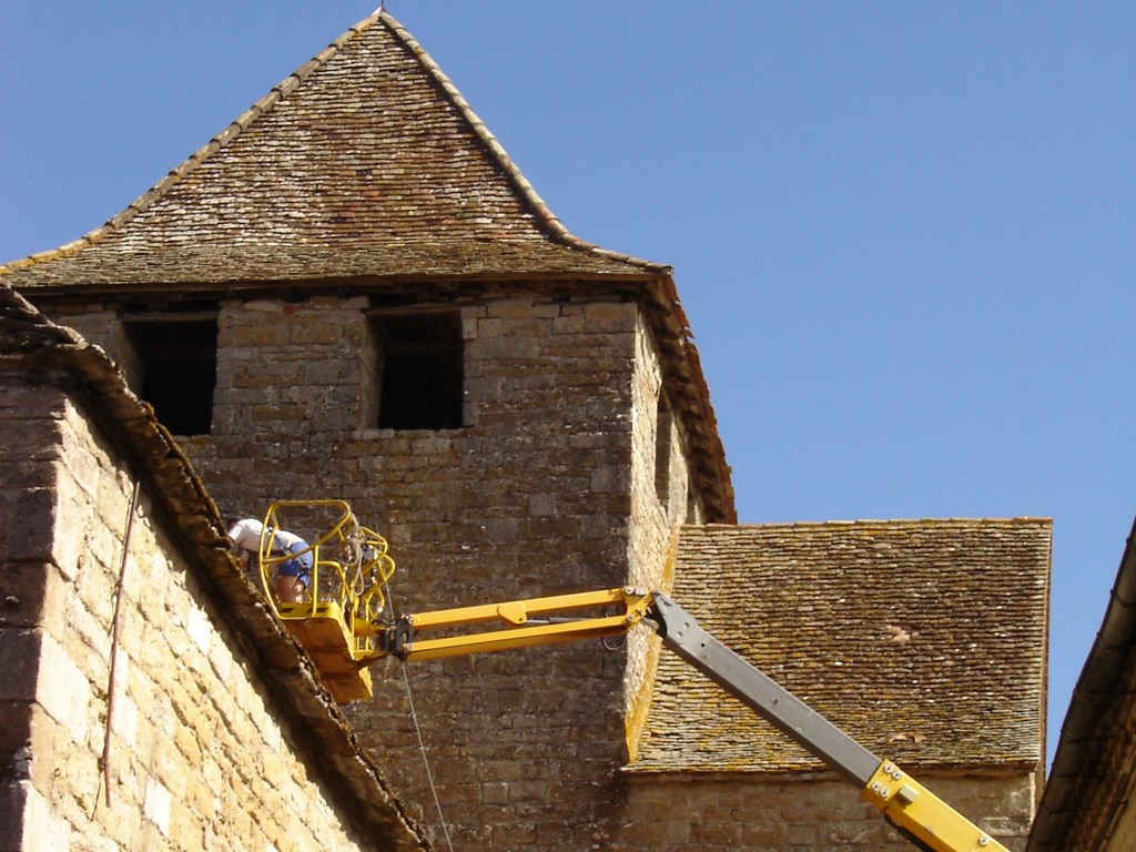 Démoussage de la toiture de l'église